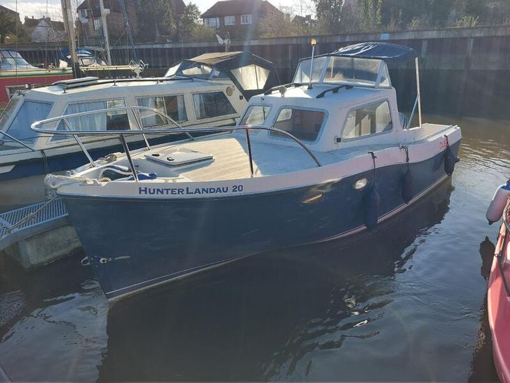 The Landau 20 was designed by David Thomas for Hunter Boats in 1998 where it made its first appearance at the Earls Court boat show. The Landau 20 Cruiser is a Category C Inshore and Coastal launch. With the addition of a wheelhouse and cockpit canopy which can enclose the cockpit as additional living area. The cockpit is fully self draining – most unusual on a motor boat of this size. At low speeds her wake is minimal and at high speeds the hull gives a soft, stable ride with simply amazing performance thanks to the Twin Tunnel Hull Technology – very civilised motoring. It won industry awards for its radical cathedral (semi-displacement) hull design, with an innovative twin tunnel hull shape that reduces wash and is reknowned for stability even on dramatically tight turns. The hull design is still used in the latest Landau Walkaround and has recently been accredited with being one of the top ten best river boats ever built.