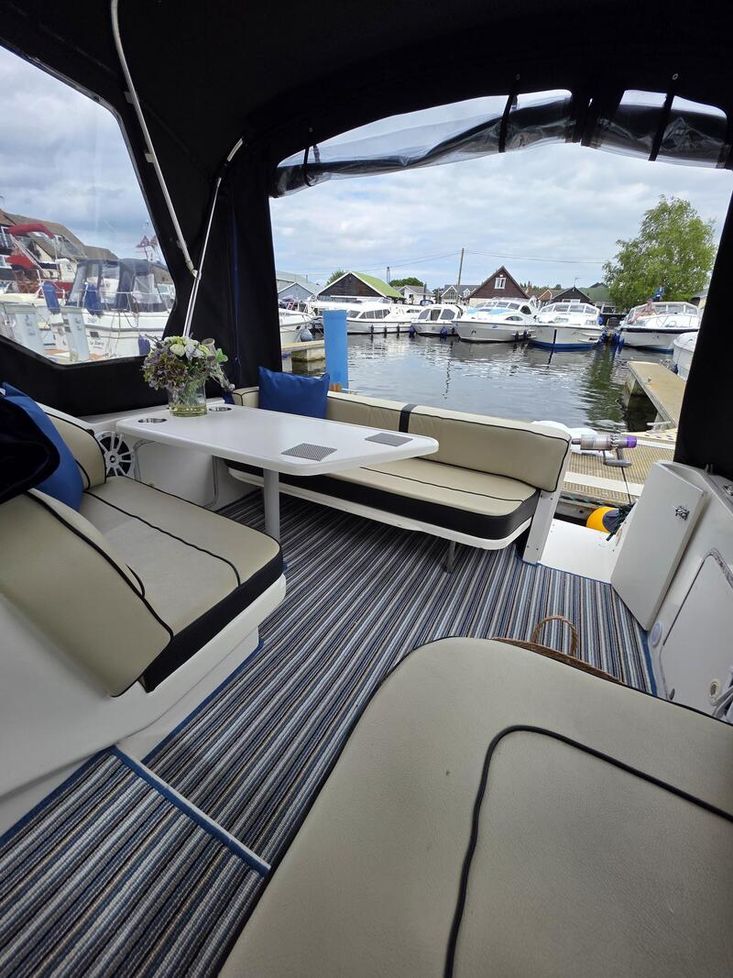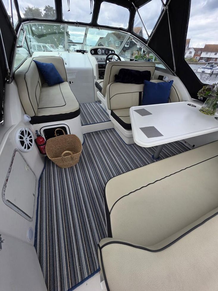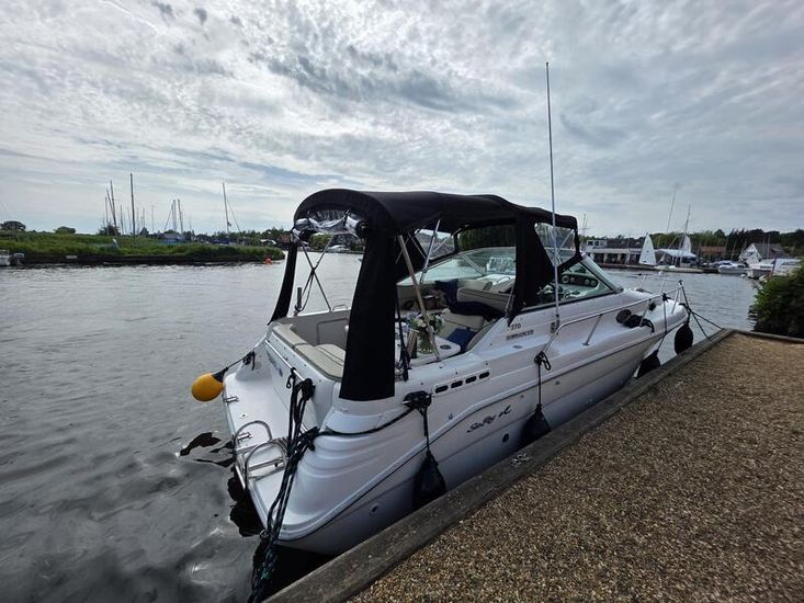 Presented in lovely condition, this well maintained Sea Ray 270 is unusual being powered by Mercruiser diesel engine/Bravo 3 sterndrive (both new in 2000). She has a great specification including bowthruster, shorepower, warm air heating and lots more. She can sleep 4 people in her 2 cabins and has recently had a new canopy. Polished and antifouled last year.